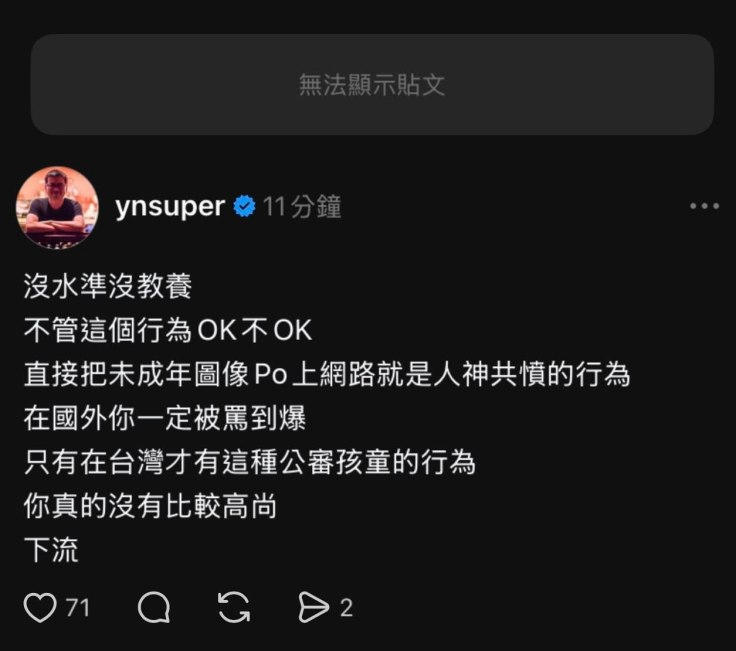 尋人啟事 尋人啟事 麻煩知道本文中家長聯繫方式還有認識這個在台港人的 麻煩私訊我謝謝 我會幫忙負責所有訴訟過程律師的費用 我在乎的只有公道 這傢伙太囂張 竟然敢封鎖我 我只好幫你高調 希望趁這個機會可以讓大家看看在台灣拍攝未成年肖像公開上網到底會不會受到法律的制裁 沒真正試過沒真相 我們 就來試試看吧 就醬 原文討論串 ScreenshotScreenshot 分享此文: 分享到 X(在新視窗中開啟) X 分享到 Facebook(在新視窗中開啟) Facebook 喜歡 正在載入... 相關 發表留言 取消回覆 Δ