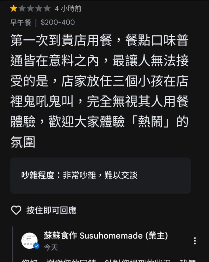 一位厭童仔給了店家一顆星