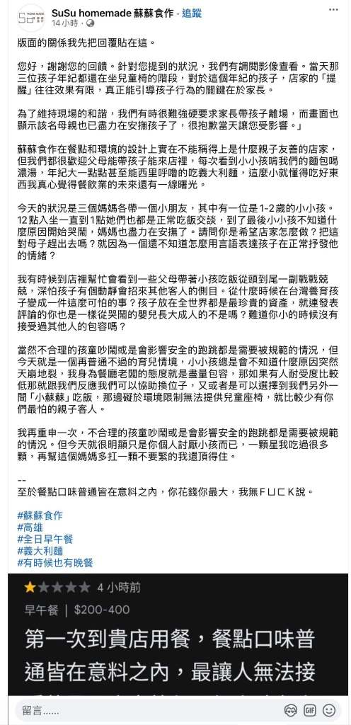 「小朋友不要吵 那邊有客人不開心」